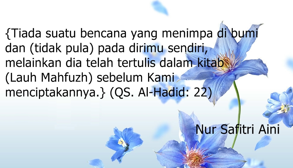 Segala puji Ibu panjatkan kehadirat Allah ta’ala yang telah memudahkan Ibu untuk beribadah kepada-Nya. Shalawat serta salam Ibu sampaikan kepada Nabi Muhammad shallallahu ‘alaihi wasallam, keluarga dan para sahabatnya. Amin…